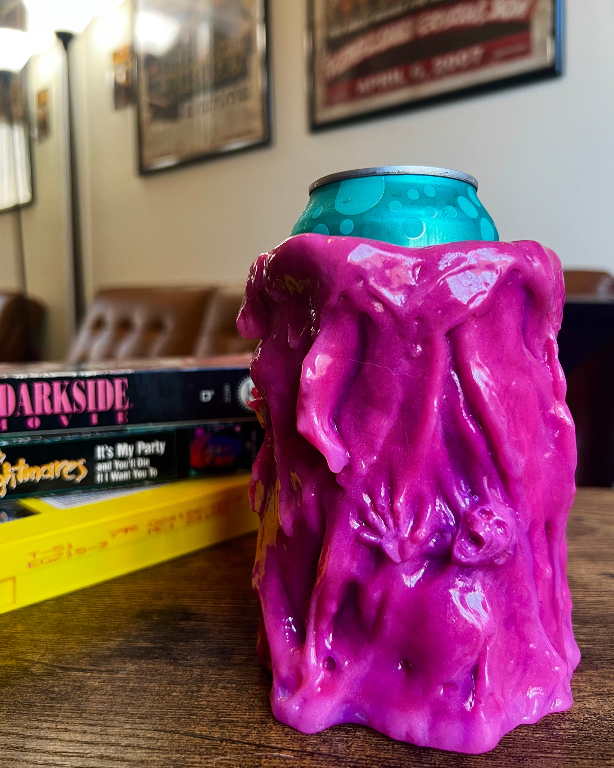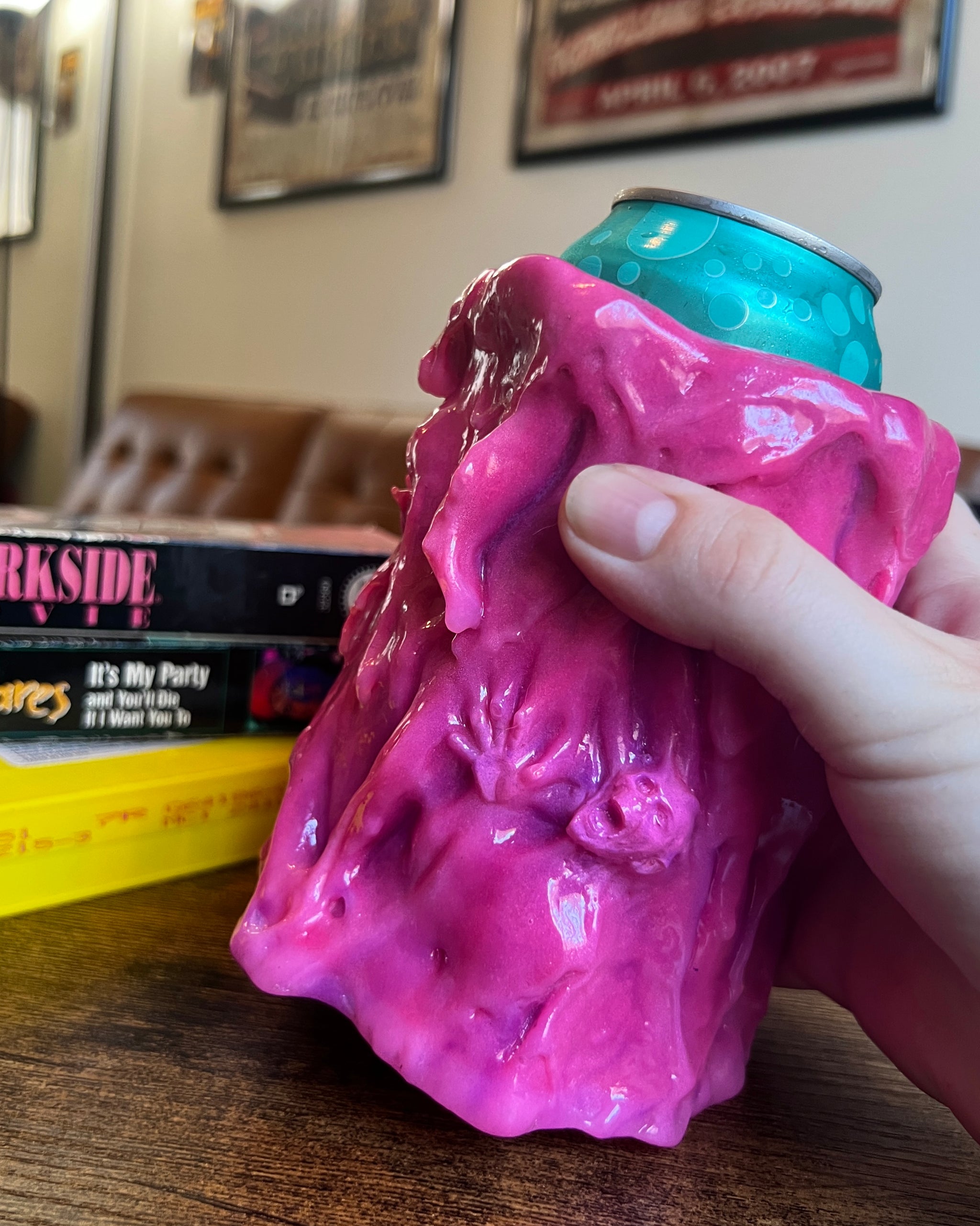 Sculpted and hand painted. Please note, that while these are durable, practical and intended for use, treat these Koolers with care as they are each handmade art pieces.